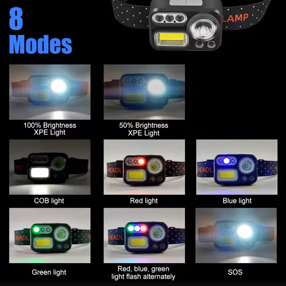 Introducing the Pop Energy LED Headlamp, the ultimate solution for all your lighting needs. This innovative headlamp is equipped with a powerful combination of LED and COB lamp beads, allowing you to easily switch between high beam, floodlight, red, green and blue lights. Whether you work in low-light conditions or need colored light to signal your presence, the Pop Energy LED headlamp has you covered. With its advanced sensing modes, this headlight makes it easier than ever to complete a variety of tasks, giving you the flexibility and convenience you need to excel in any situation.